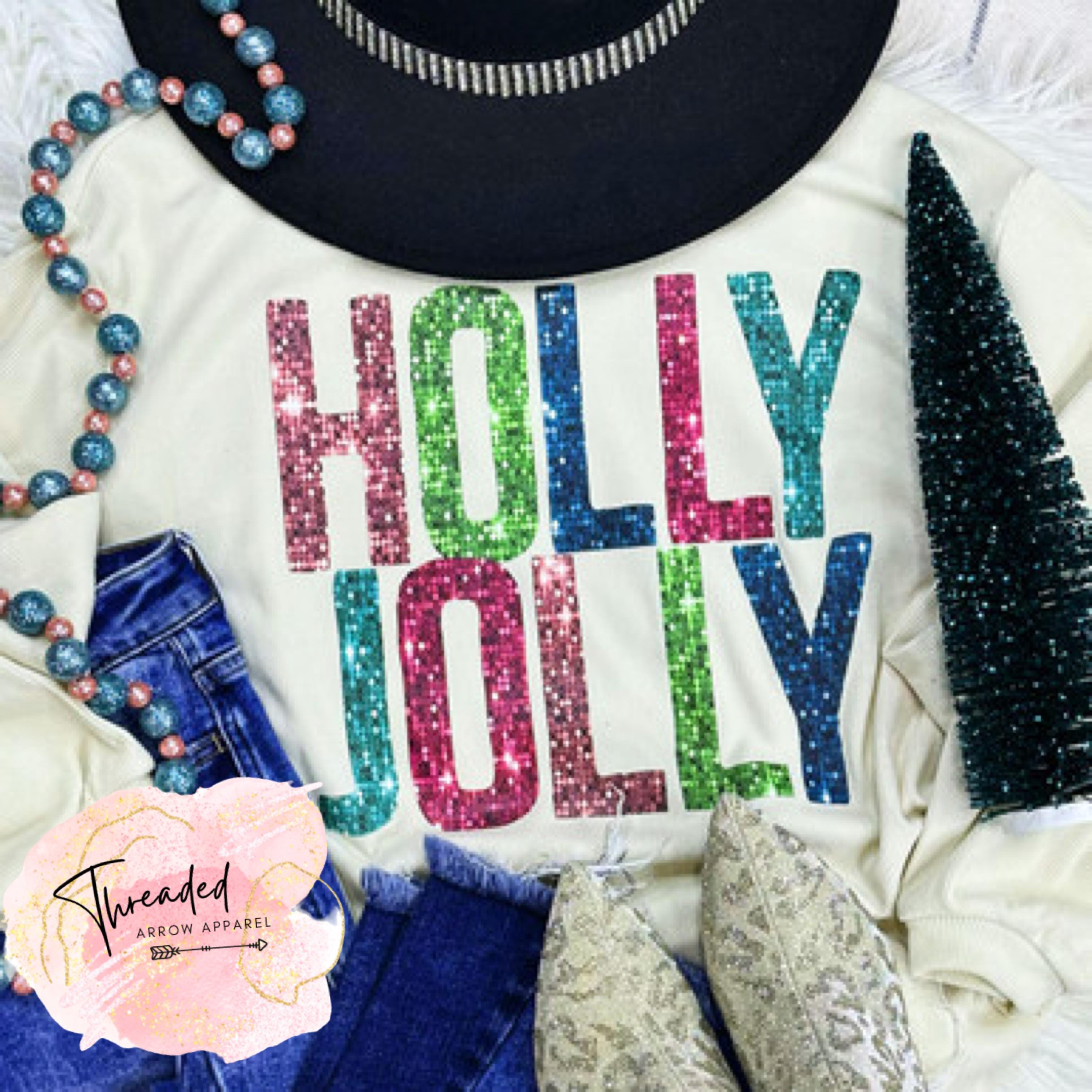 Holly Jolly Faux Glitter Sweatshirt/Tshirt, Christmas Sweater