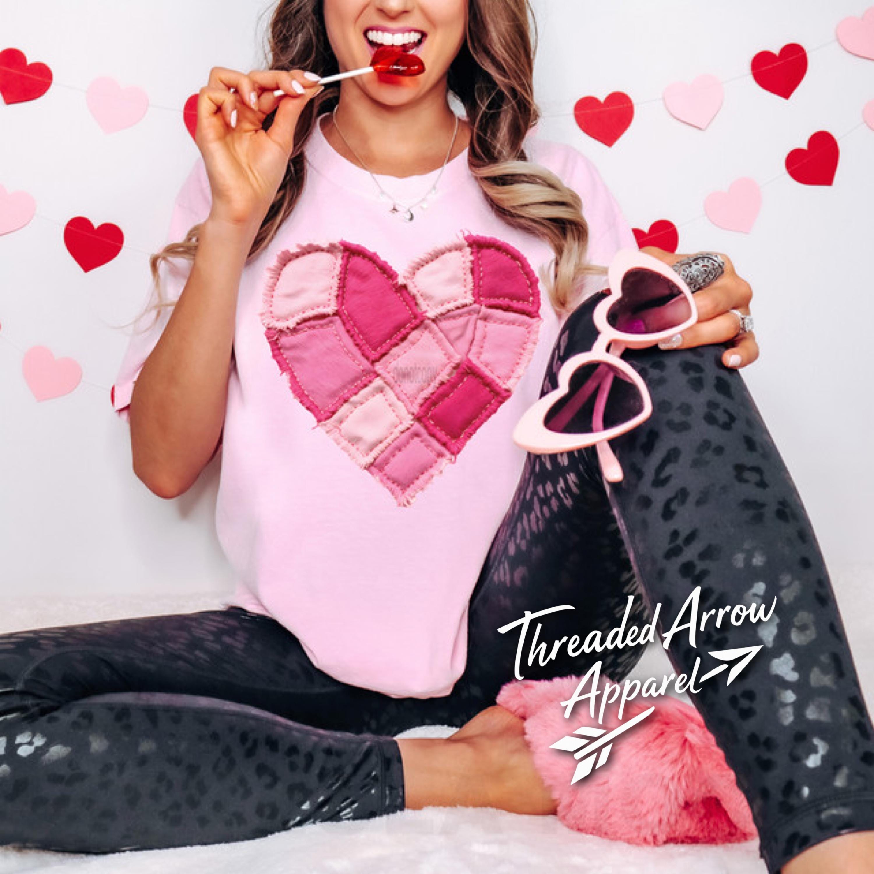 Faux Patchwork Heart Shirt, Valentines Shirts, Valentines Sweater